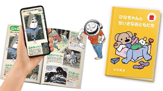 さらにこの図鑑はAR技術と連動しており、ARマークが付いた妖怪をスマートフォンで読み込むと、子泣きじじいや小豆洗いなどがARで本から飛び出し、しゃべったり音を出したりするとのことです。